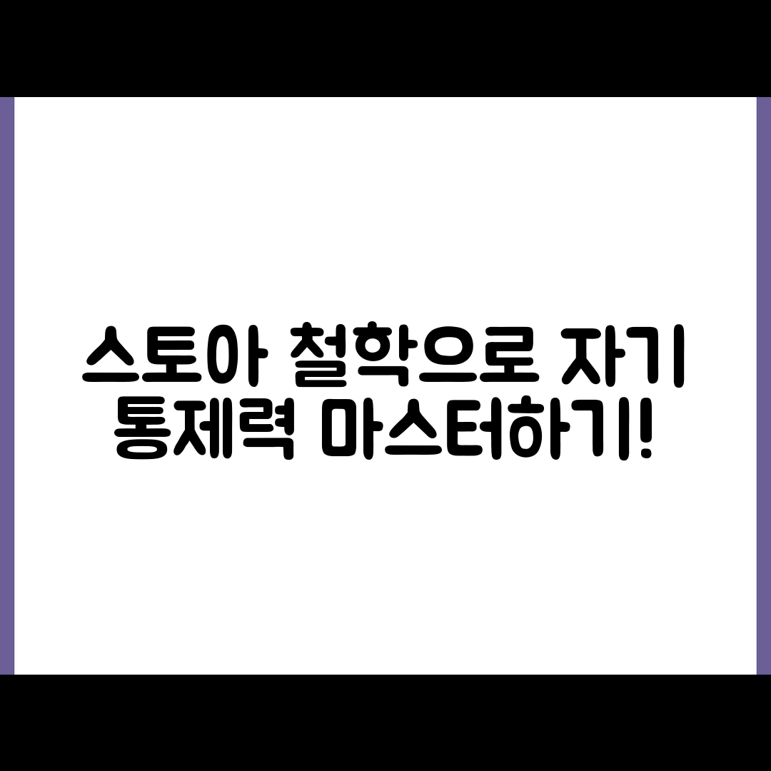 ✅ 스토아 철학의 자기 통제력 강화 훈련법은 무엇인가요?